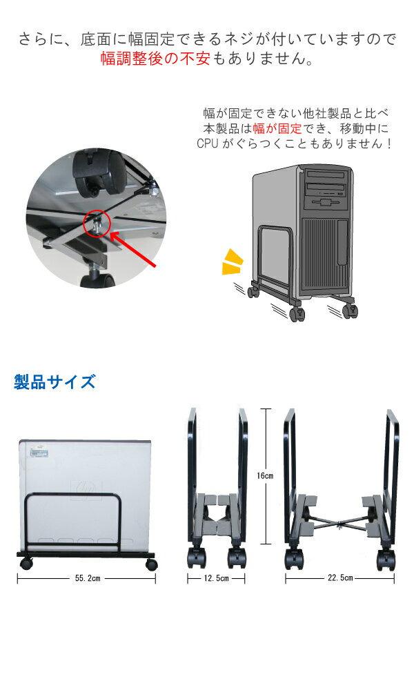 キャスター付きCPUスタンド AMEX-DPC02■商品特長パソコン本体が床へ直置きになっていると、ホコリが気になりますね。